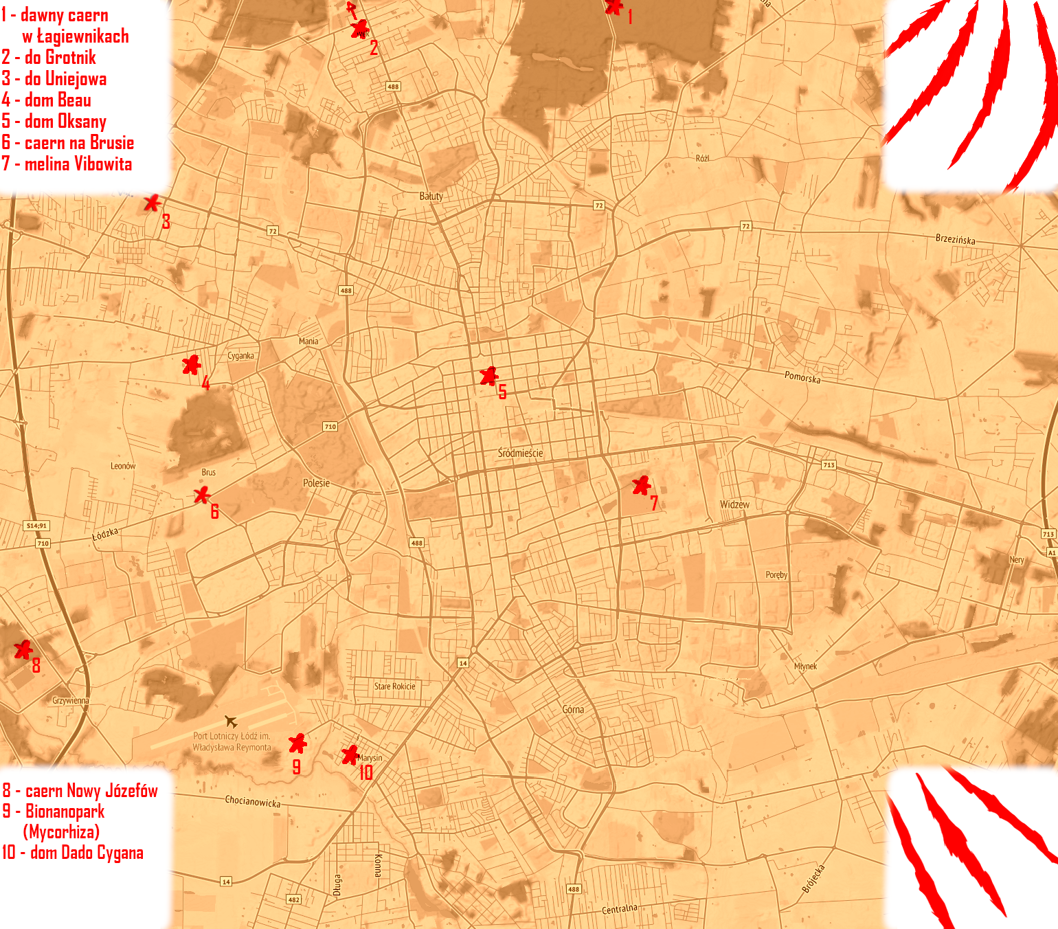 W Świecie Mroku Łódź nie różni się zanadto od tej, którą znamy z rzeczywistości. Wszystkie ulice prowadzą tam, gdzie dziś, nikt nie wysadził w powietrze Pałacu Poznańskiego ani Kościuszki na Placu Wolności. Odremontowano trochę kamienic, tu i tam połatano dziurawy asfalt, nawet niegdyś rachityczna miejska zieleń wygląda obecnie całkiem przyjemnie.